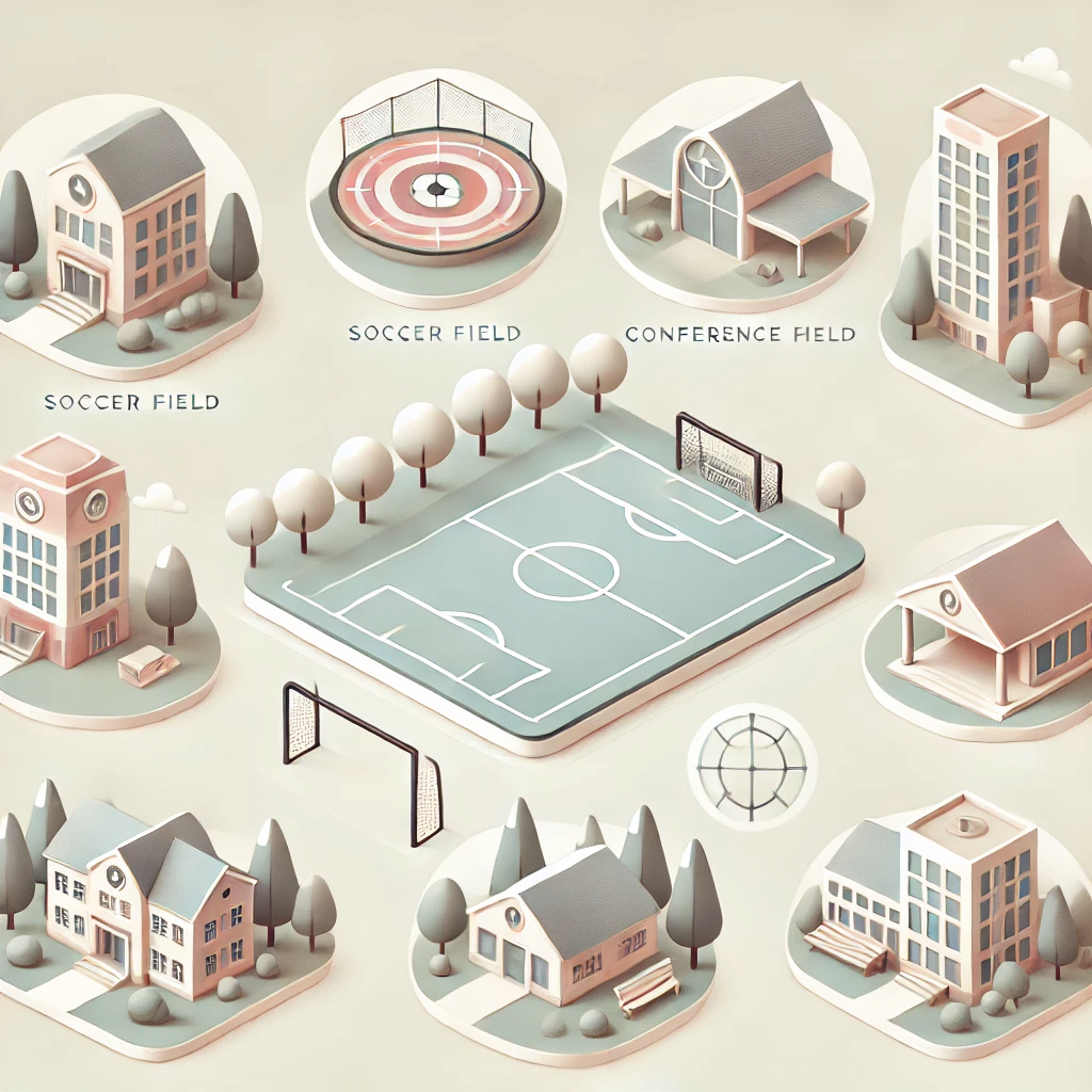 | 체육시설 | 축구장, 테니스장, 농구장, 실내체육관 등 |