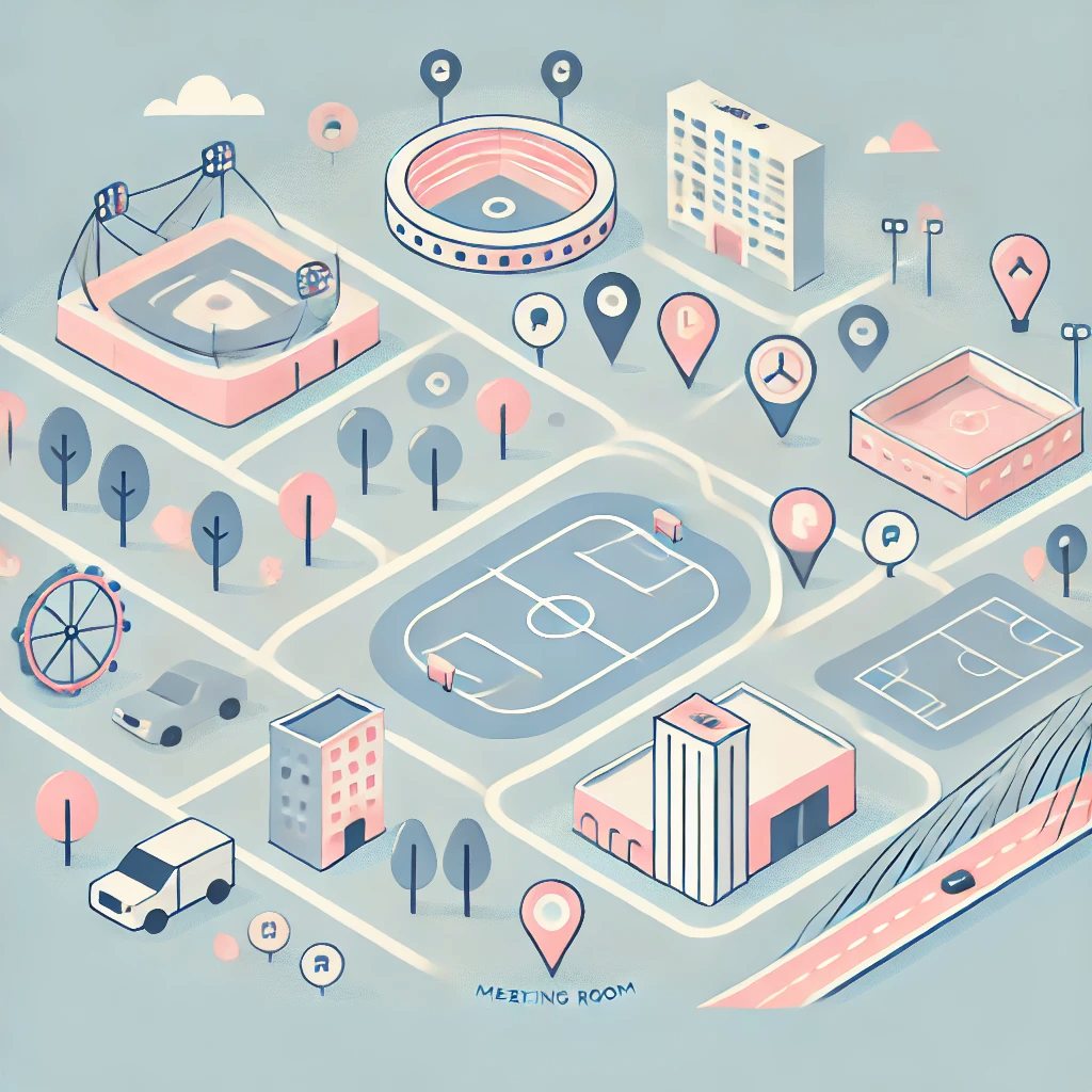 - 검색창에 '축구장', '회의실' 등 원하는 시설 입력