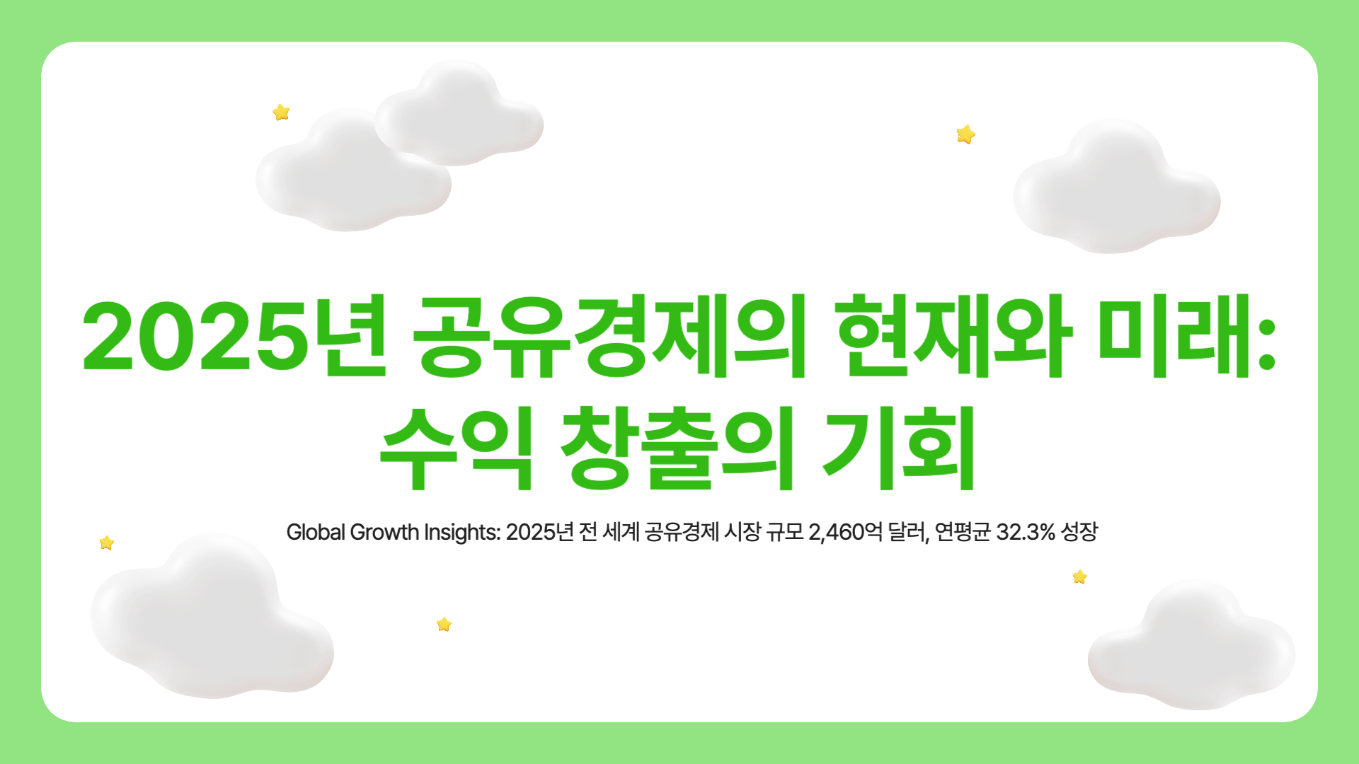 Global Growth Insights 자료에 따르면, 2025년 전 세계 공유경제 시장 규모는 무려 2,460억 달러에 이른다고 해요. 연평균 32.3%씩 성장 중이라니, 진짜 어마어마하죠?