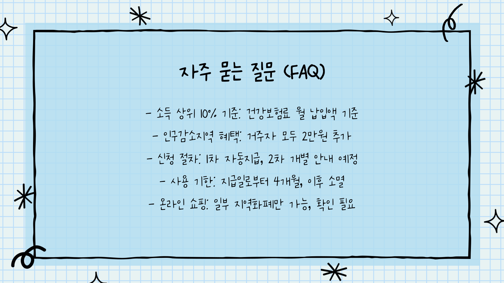→ 네, 해당 지역 주민이면 소득과 무관하게 2만원이 추가돼요. 주민등록상 거주 기준으로 판단될 가능성이 커요.