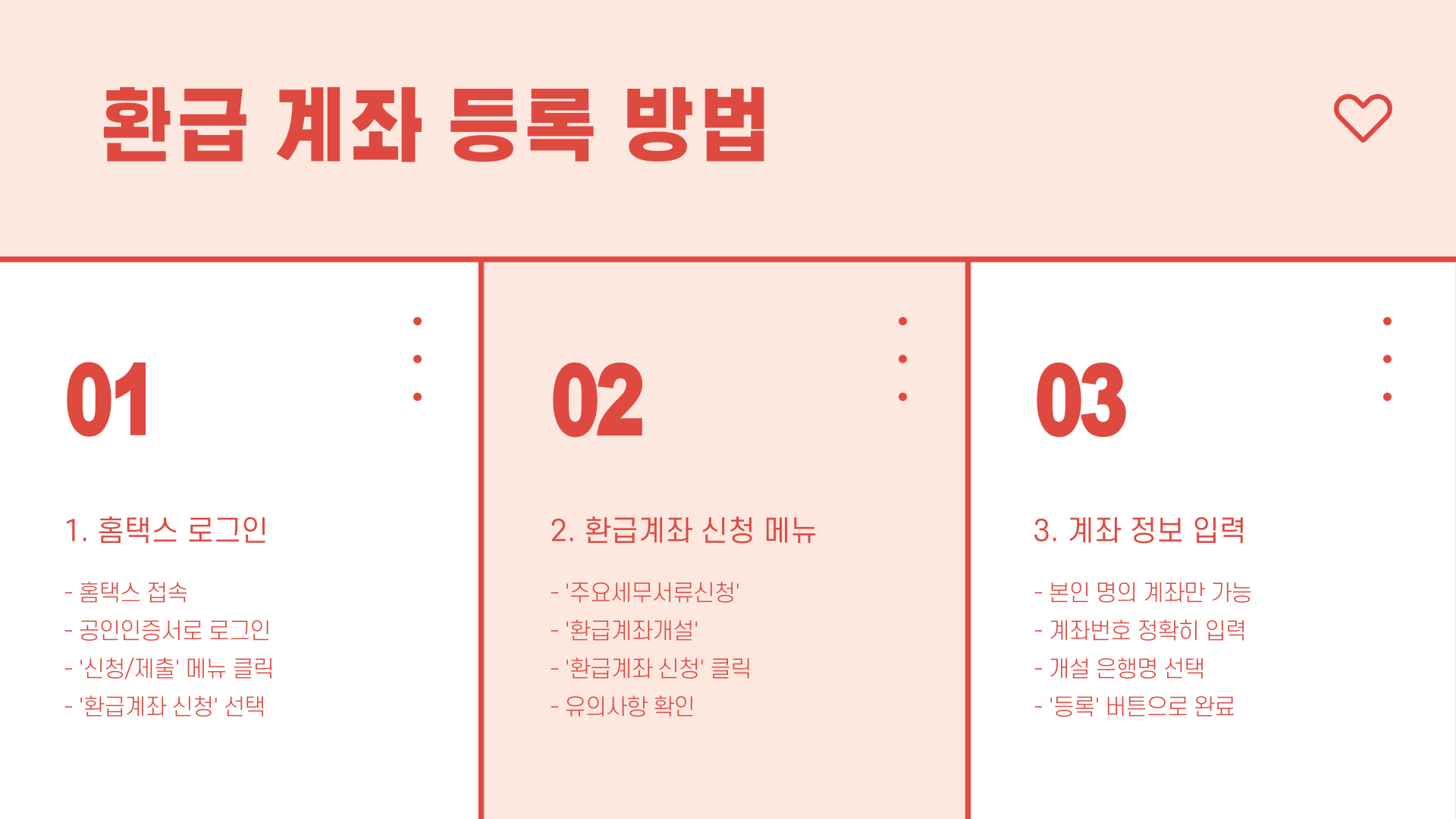 혹시 아직 계좌 등록 안 하셨다면 지금 바로 홈택스 들어가서 점검해보는 거 강력 추천드려요. 놓치면 아깝잖아요?