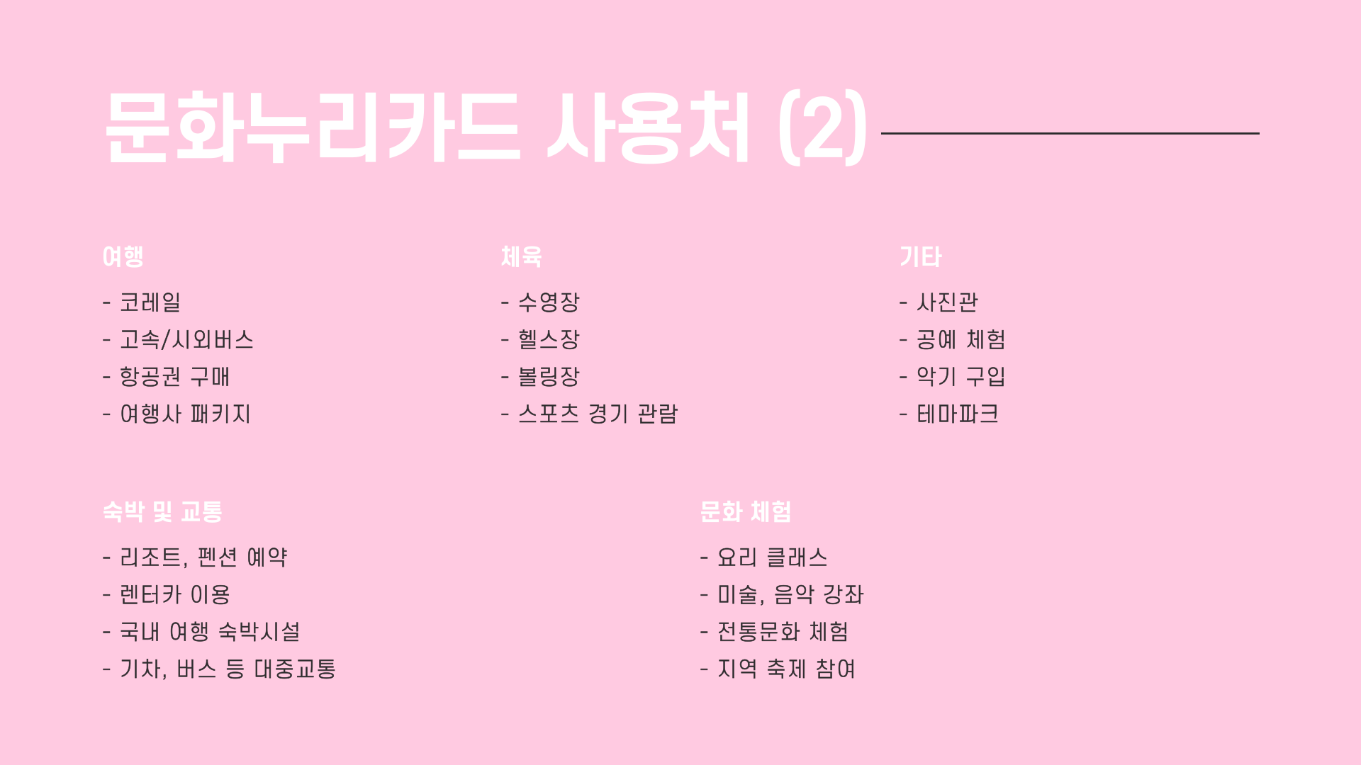 제가 써보니까 진짜 알차더라구요. 단순히 금액 지원이 아니라, 삶의 질이 살짝 올라가는 느낌? 예전엔 미뤘던 영화도 보고, 전시회도 가고, 여행도 계획하게 되고요.