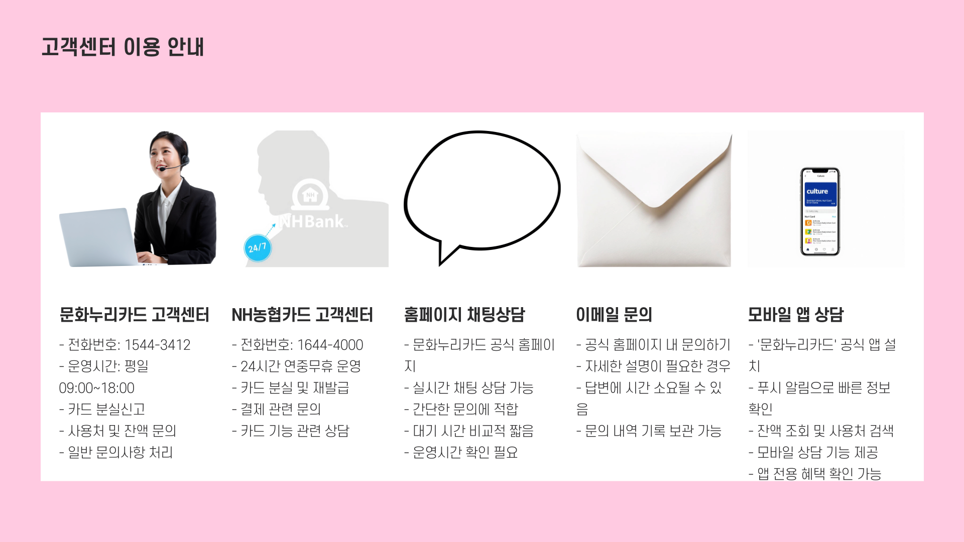 - NH농협카드 고객센터: 1644-4000 (24시간)