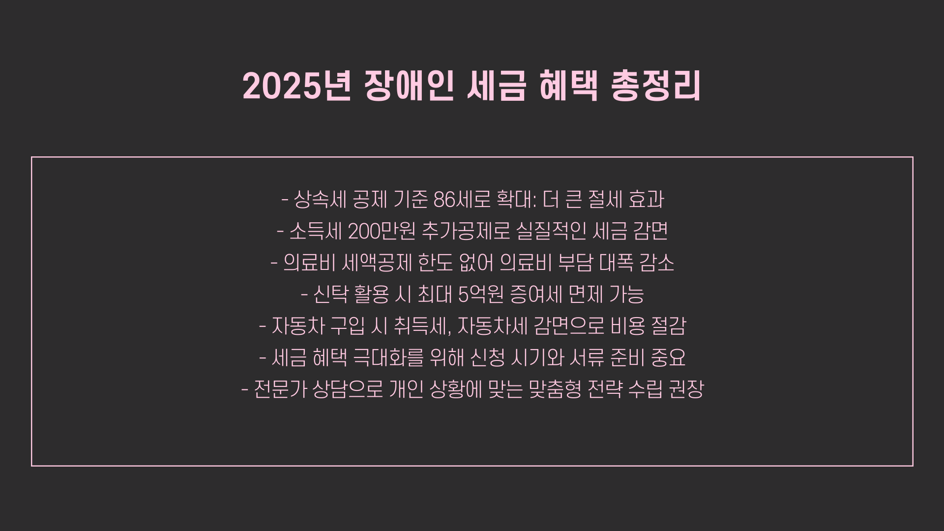 1. 2025년 장애인 세금 혜택 총정리