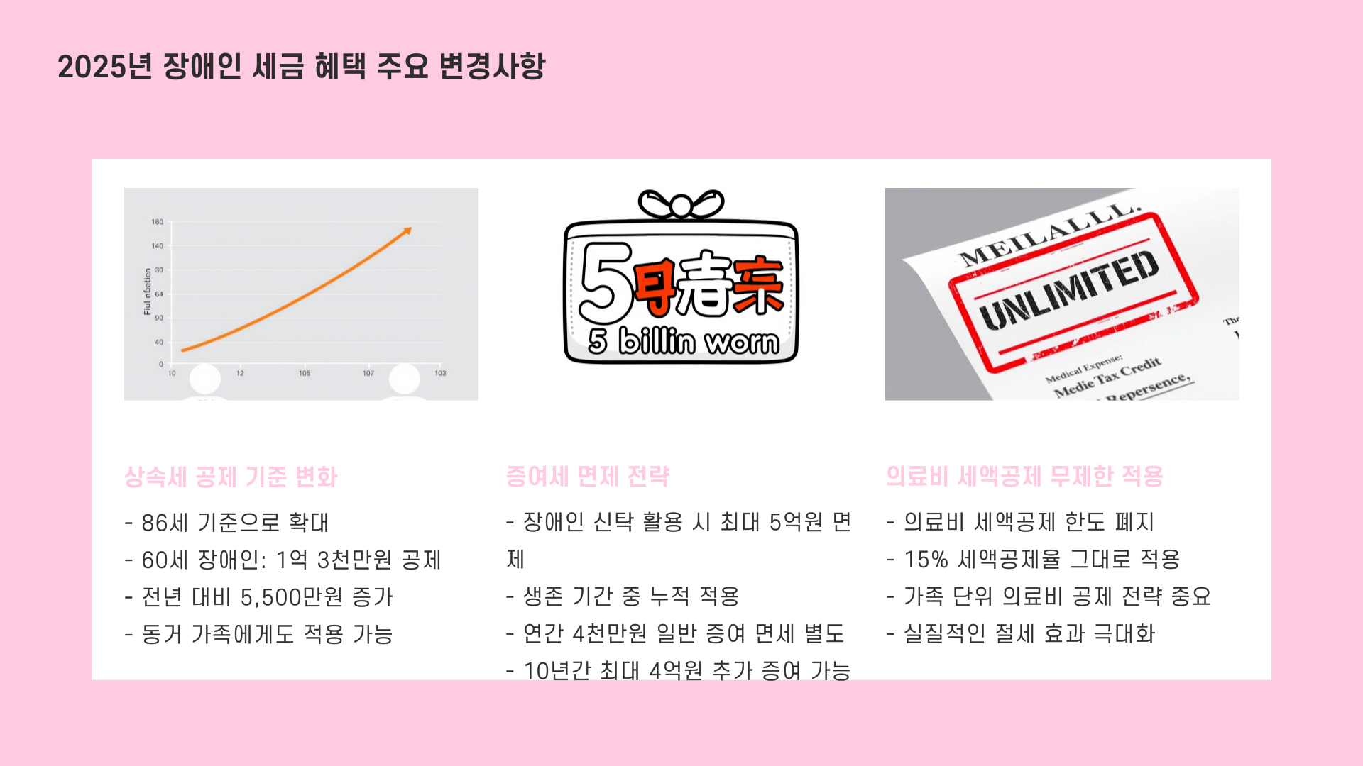 오늘 정보, 어떠셨나요? 장애인 세금 감면 혜택이 이렇게 많고 실질적인 줄 모르셨던 분들 많으셨을 텐데요! 하나하나 놓치지 않고 챙기면, 몇 백만 원 절세는 금방이에요!