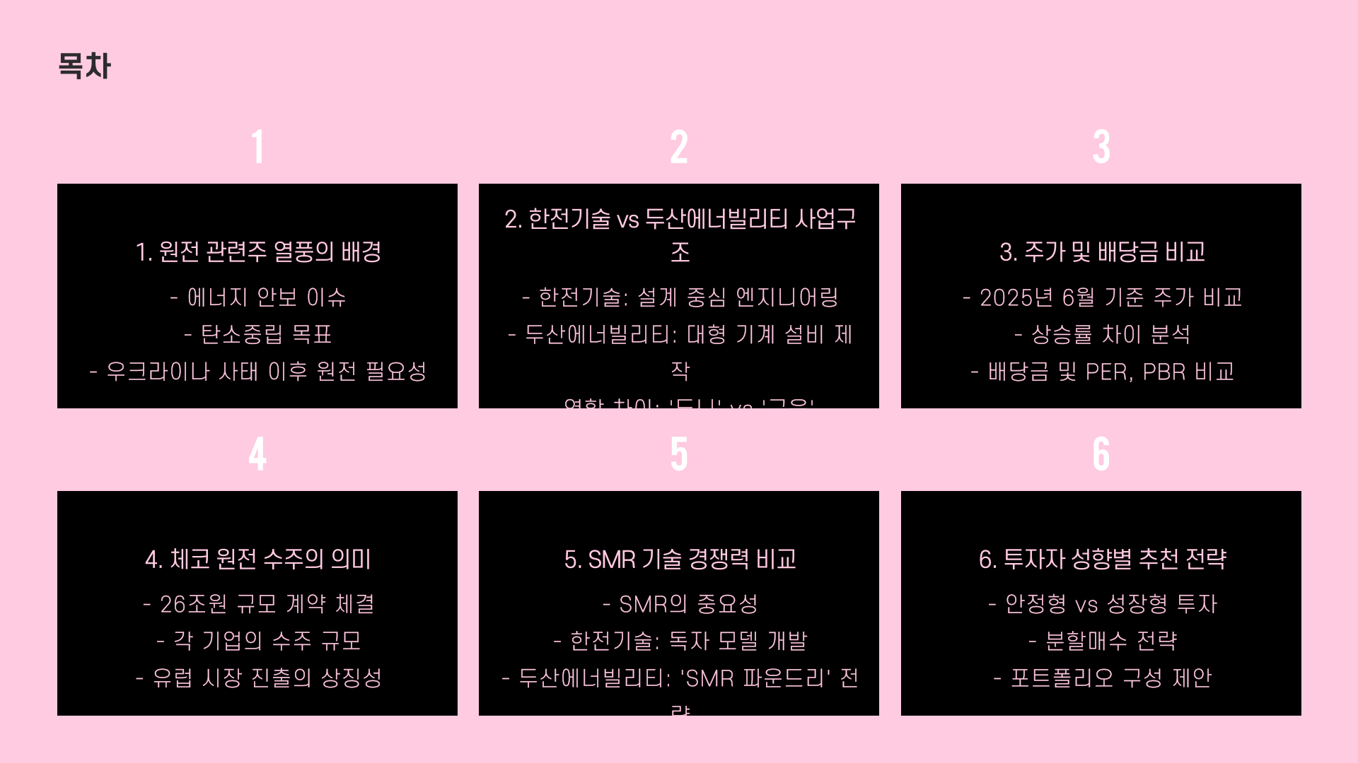그래서 오늘은 진짜 한눈에 보기 쉽게, 주가부터 사업구조, 배당금, 그리고 SMR이나 체코 원전 같은 성장 스토리까지 전부 싹 다 비교해드릴게요. 이거 보시고 나면, 내 포트폴리오에 어떤 종목을 어떻게 넣을지, 머릿속에 딱 정리될 거예요.