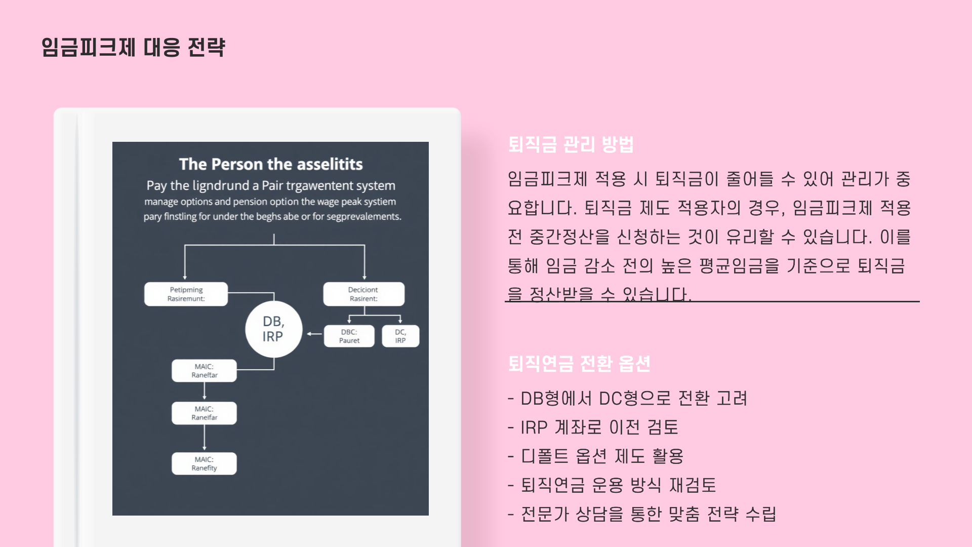 이 제도에 대응하려면 퇴직금 관리부터 철저히 해야 해요. 만약 퇴직금 제도라면 중간정산 신청하는 게 유리하구요. 퇴직연금(DB형)은 DC형으로 전환하거나, 아예 IRP 계좌로 옮기는 방법도 있어요. 자세한 방법은 아래에서 확인하세요.