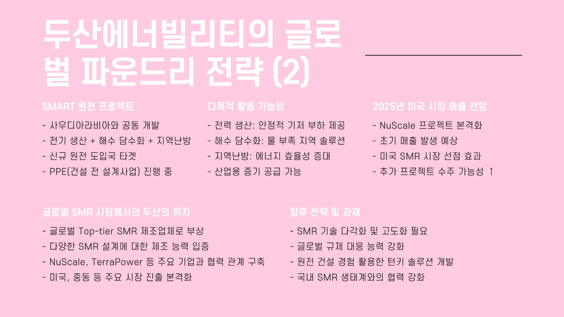 | 2025 하반기 | 두산의 미국 SMR 수주 본격화 | 두산에너빌리티 |