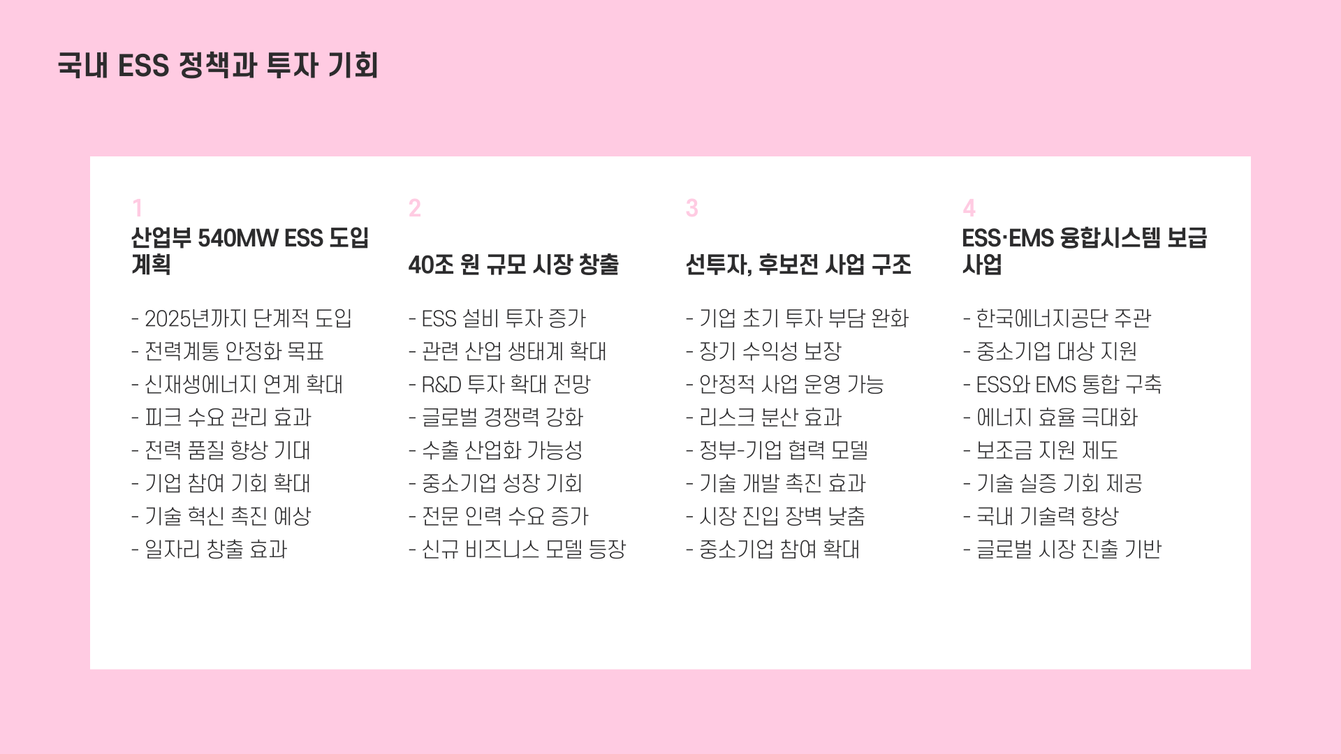 앞으로가 더 기대되는 산업, ESS. 지금이라도 한 발짝 먼저 다가가면, 생각보다 큰 기회를 잡게 될 수도 있을 거예요!