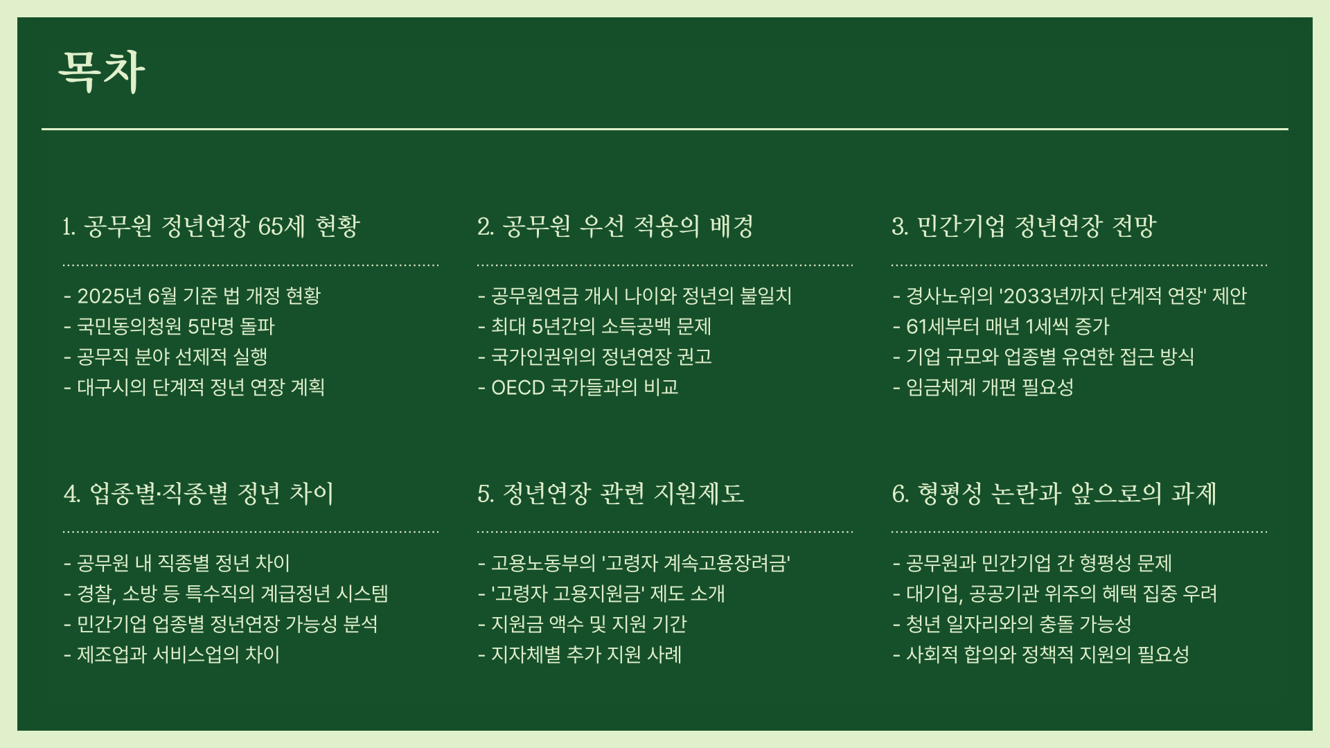 민간기업 쪽은 아직 조용하냐고요? 전혀요! 이미 대통령 직속 경사노위에서 단계적 연장 플랜까지 꺼내놨어요. 당장 내일은 아니지만, 준비는 지금부터 해야 되는 분위기예요. 이 글에서는 공무원 정년연장 상황부터 민간기업 도입 예상 시기, 지원제도까지 차근차근 정리해볼게요. 바로 밑에 중요한 정보가 있으니 놓치지 마세요.
