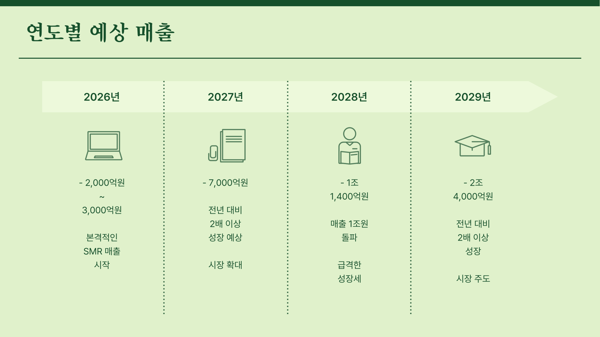 두산 에너빌리티의 SMR 전략은 그냥 장기적 계획이 아니라 진짜 실행 중심이에요. 업계 분석에 따르면, 2026년부터 본격적인 매출이 발생하고 2030년까지 3조 3,000억원까지 성장할 수 있다고 전망하더라구요!